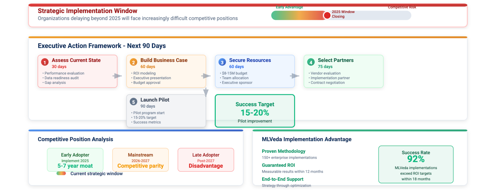 - Secure Resources: Allocate $8-15M budget for enterprise implementation with 24-month timeline