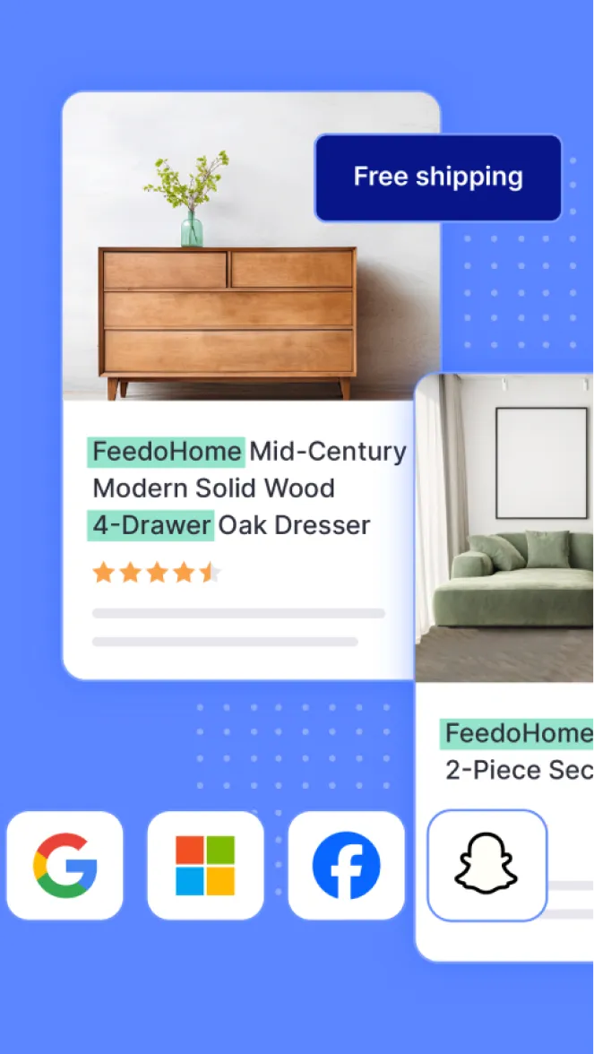 MLVeda's Feedonomics service helps you effectively manage, optimize, and distribute product feeds to hundreds of advertising channels and marketplaces. Enhance your ad performance, expand your reach, and streamline feed management—all with the expertise of our dedicated team.